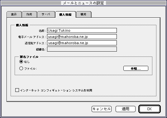 ◎文中の例では、ユーザIDが"usagi" 氏名を"Usagi Tukino"として説明しています。