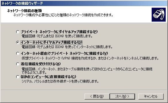 - 「呼び出すダイヤルアップ サーバーの種類(E):」