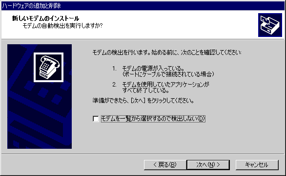 - 「接続の方法:」 ご使用のモデムやTAを選択