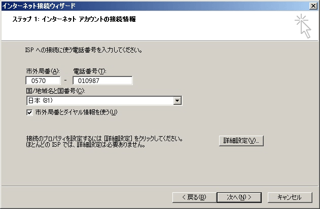 - 「国番号/地域番号(U):」 「日本 (81)」を選択