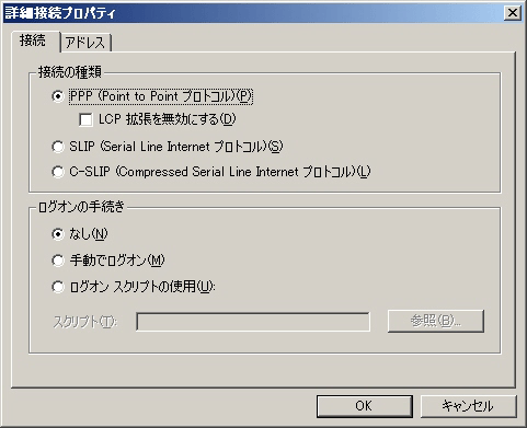 「PPP: Windows 95/98/NT4/2000, Internet」を選択